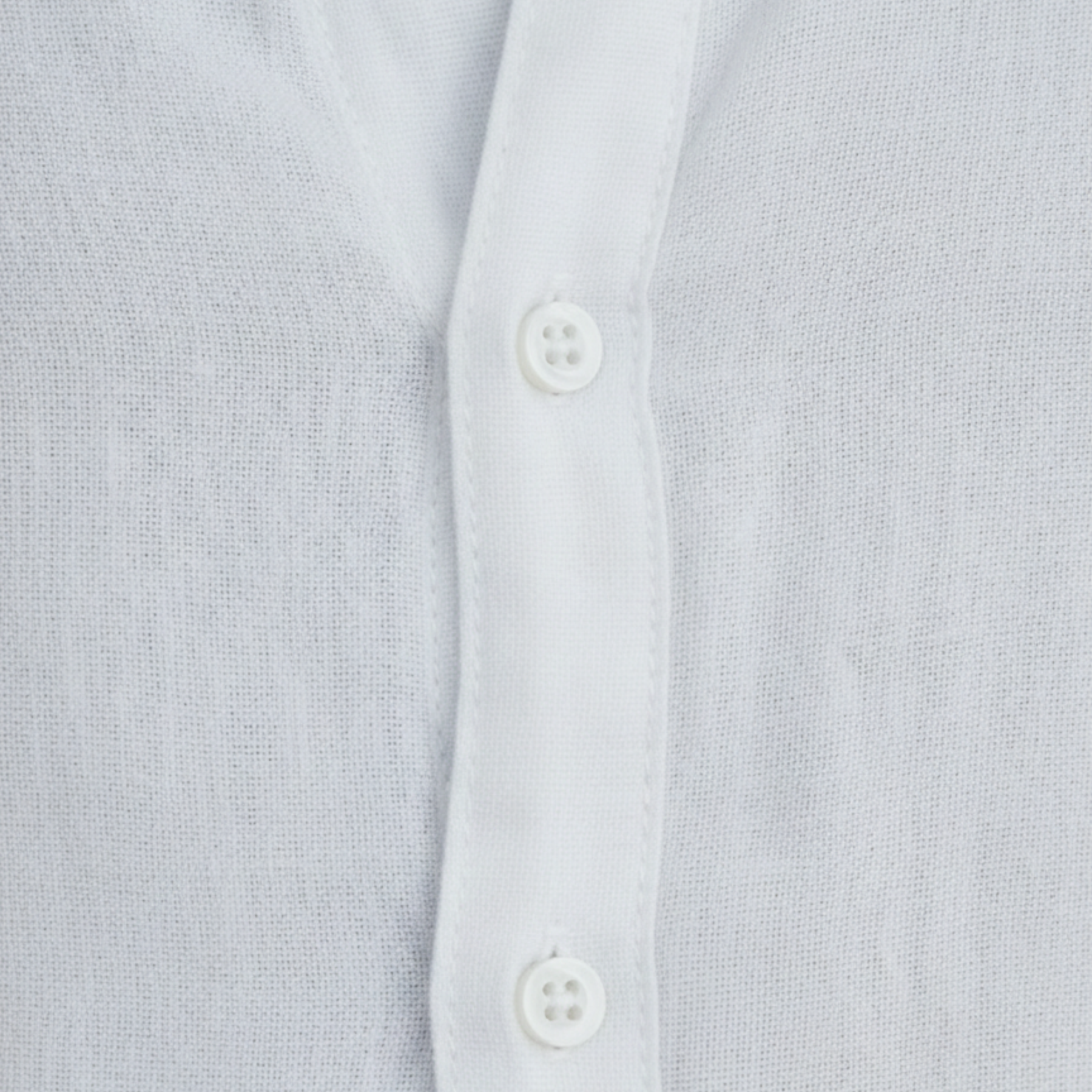 This men’s linen shirt is designed for adult wear and features a mandarin collar with a full button front and long sleeves. Made from linen and presented in a solid white and black color, the shirt is intended for warm weather and everyday casual use. It can be worn on its own or layered, with sleeves styled rolled or down, making it suitable for summer and transitional seasons where a lightweight and breathable shirt style is preferred.