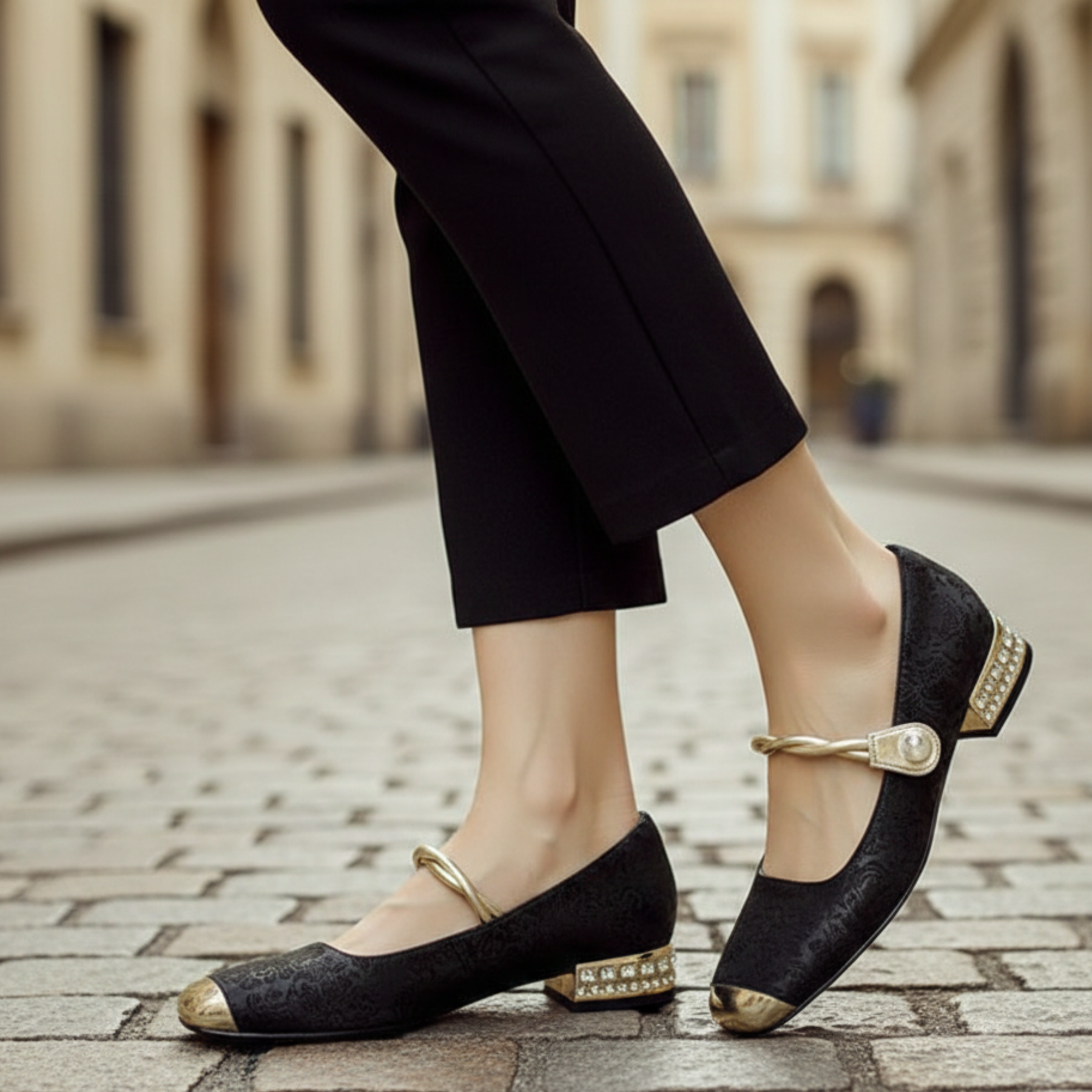 Estos zapatos de tacón para mujeres están diseñados para uso adulto y cuentan con un tacón bajo, forma de punta cuadrada y construcción tipo slip on con un detalle de correa decorativa en la parte superior. Presentados en colores verde, negro y beige con un acabado estampado, los zapatos están destinados para uso diario y casual elegante. Son adecuados para combinar con vestidos, faldas o pantalones de vestir y ofrecen una silueta estructurada apropiada para el uso regular durante los días de trabajo, eventos o temporadas de transición.