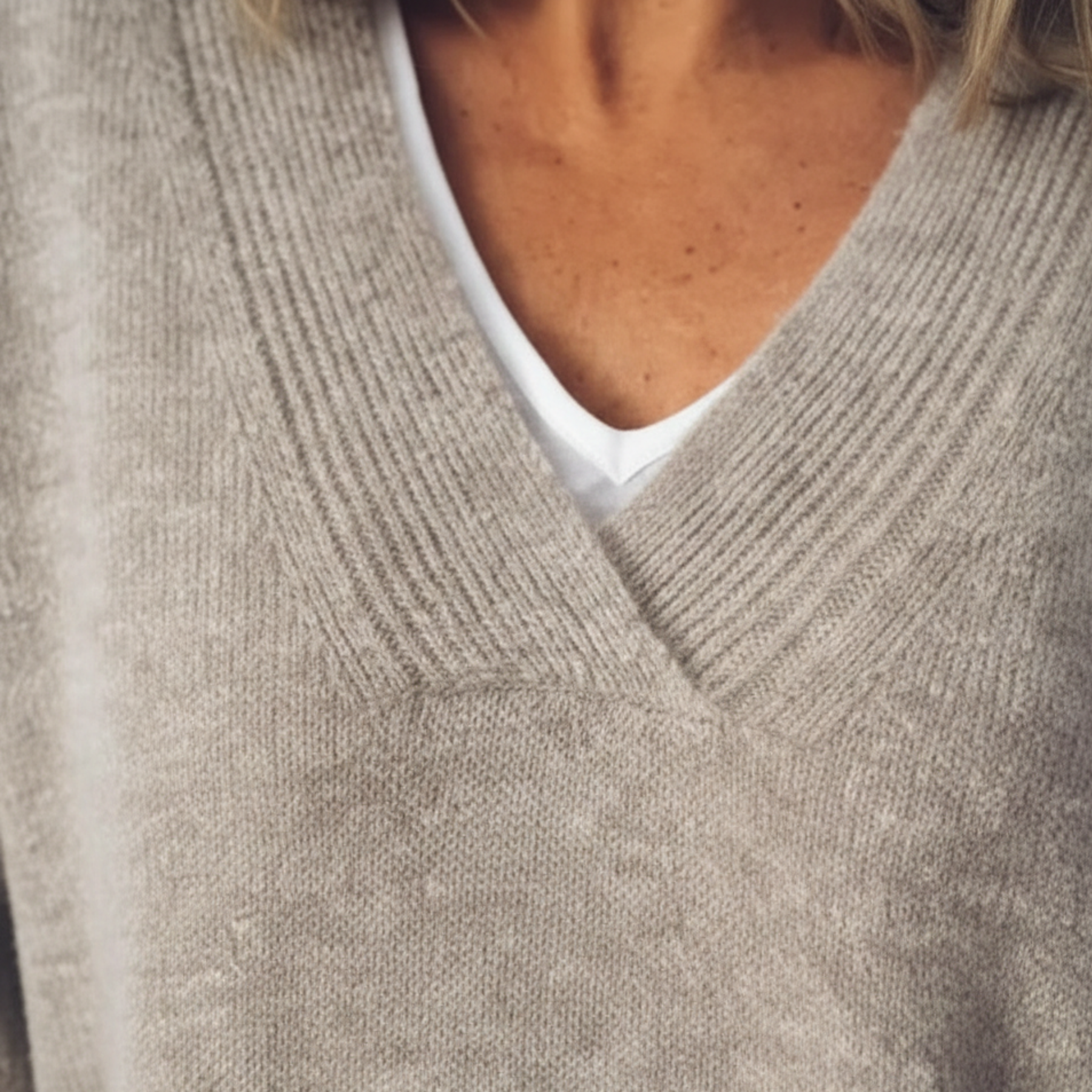 Este suéter de cachemira para mujeres presenta un diseño de cuello en V con mangas largas y un ajuste relajado. La suave construcción de punto y los puños y dobladillo acanalados proporcionan una silueta estructurada adecuada para superponer. Diseñado en un tono beige neutro, combina con jeans, pantalones o faldas para el uso diario y de temporada.