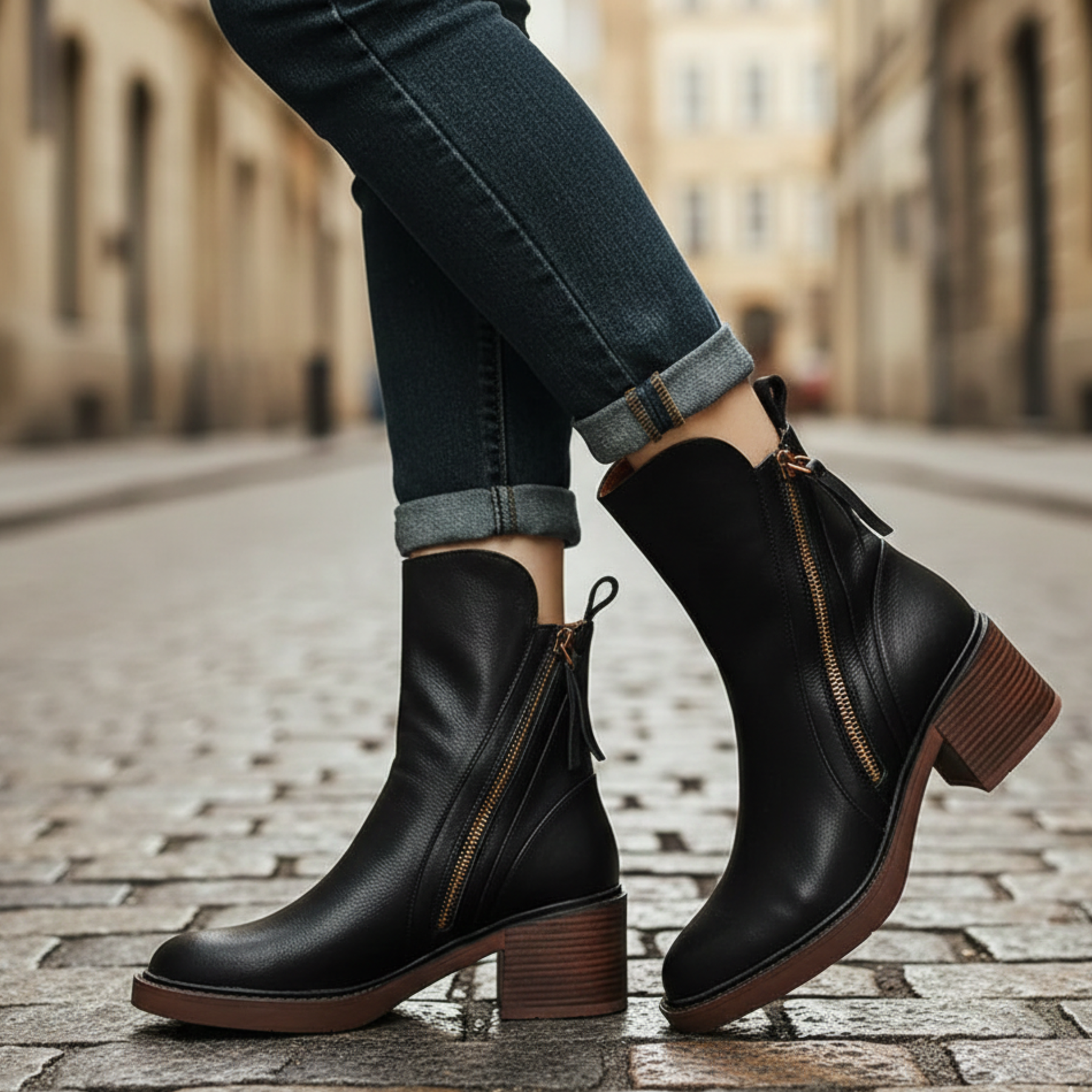 Bottines à talon bloc avec fermeture éclair latérale pour femme adulte