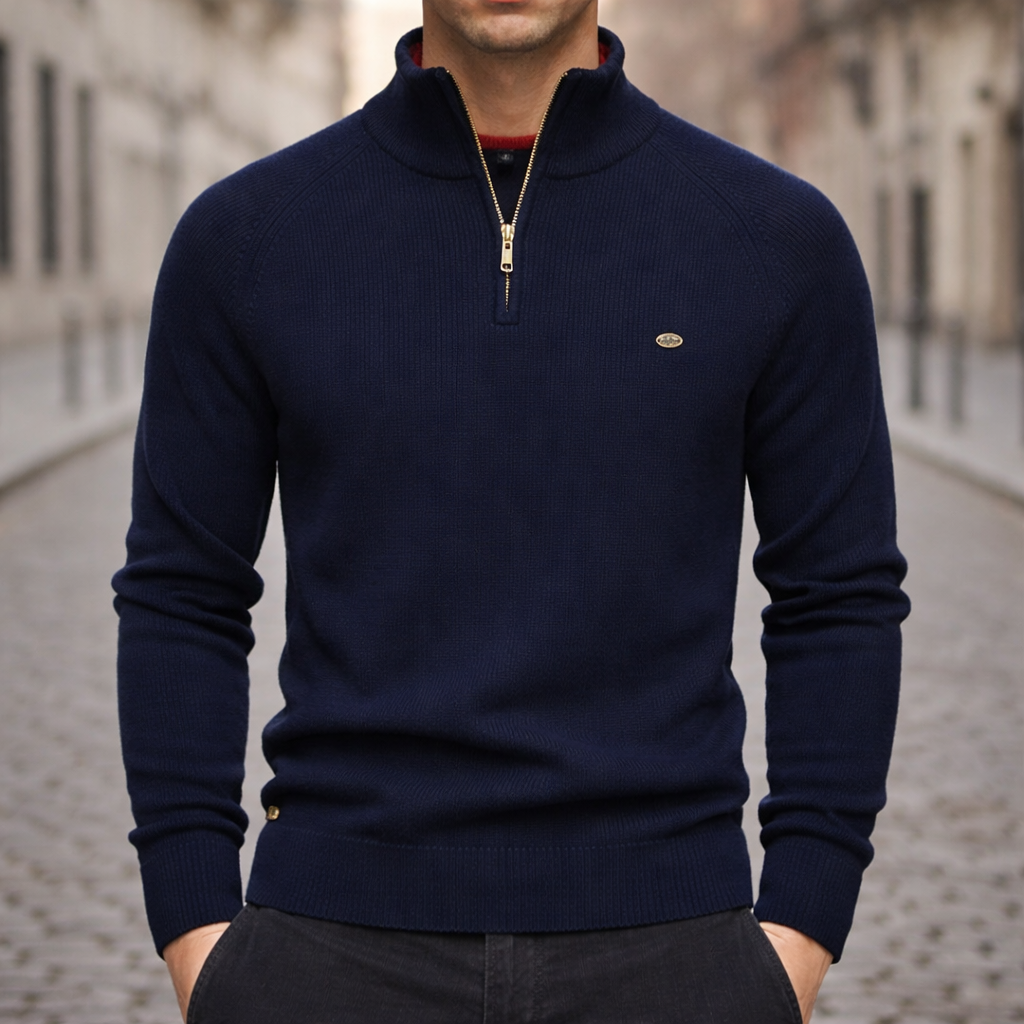 Men’s Half-Zip Ribbed Knit Sweater Slim Fit